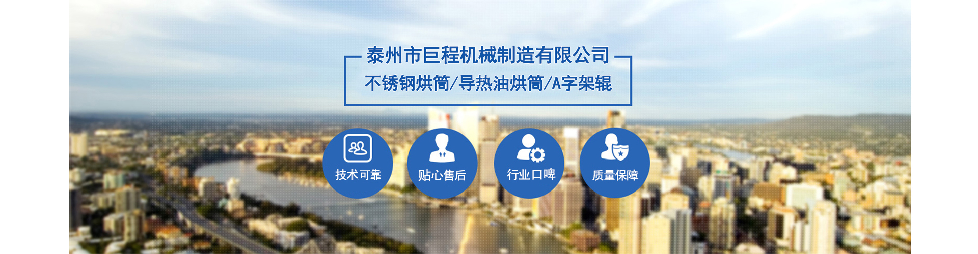 泰州市巨程機(jī)械制造有限公司 泰州市巨程機(jī)械制造有限公司泰州市巨程機(jī)械制造有限公司是一個(gè)專業(yè)生產(chǎn)不銹鋼烘筒、導(dǎo)熱油烘筒、雙層冷水輥、A字架輥、染整設(shè)備等產(chǎn)品的機(jī)械公司。我公司注重產(chǎn)品質(zhì)量,講求企業(yè)信譽(yù)。我公司重點(diǎn)在于內(nèi)部管理,努力提高產(chǎn)品質(zhì)量,強(qiáng)化全體員工的服務(wù)意識(shí),形成了一套我廠的用戶定期回訪制度,積極搜集廣大用戶在使用我廠設(shè)備過程中反饋回的各種信息,有針對性的組織人員進(jìn)行專項(xiàng)攻關(guān)